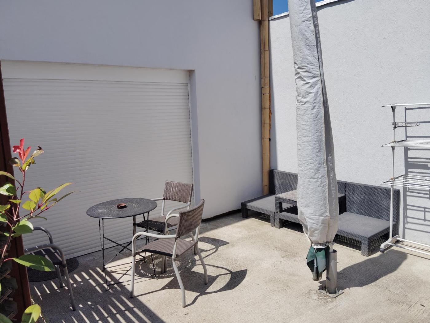 Studio avec Terrasse. Guests can make meals in the kitchenette that is fitted with a stovetop, a refrigerator, kitchenware and a microwave. The studio offers a washing machine, soundproof walls, a terrace with garden views as well as a private bathroom featuring a shower. The unit offers 1 bed. ;